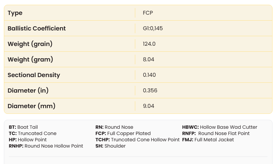 CamPro .356 124 grain FCP HP er et højtkvalitets kobberbelagt projektil designet til præcis og pålidelig genladning i 9 mm kalibre. Projektilet har en hollow-point profil og en fuld kobberbelægning, som reducerer friktion og minimerer blyaflejring i løbet.