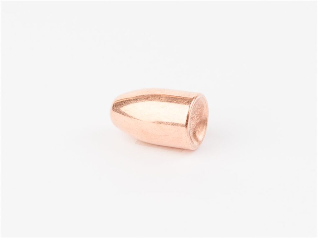 Kobberbelagt 9 mm projektil på 121 grain (ca. 7,8 g) med Hollow Base Round Nose profil. Reducerer aflejring i løbet og sikrer stabil funktion. Velegnet til genladning, træning og sportsskydning.