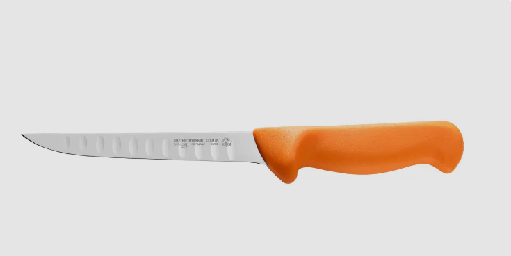 En professionel udbeningskniv fra PUMA-serien med hollow-edge blad, der gør køkken- og vildtforberedelse mere præcis, hurtig og behagelig – især når du skal fjerne kød fra ben uden at beskadige strukturen.