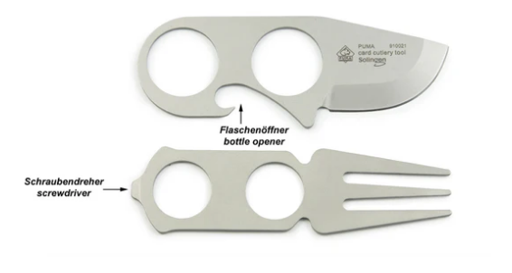 PUMA Card Cutlery Tool er et ultrakompakt multiværktøj og rejsebestik i kreditkortformat fra PUMA Solingen, ideelt til outdoor, rejser, picnic eller hverdagsbrug. Det er designet til at erstatte plastbestik og kan nemt rumme flere funktioner i et meget lille format.