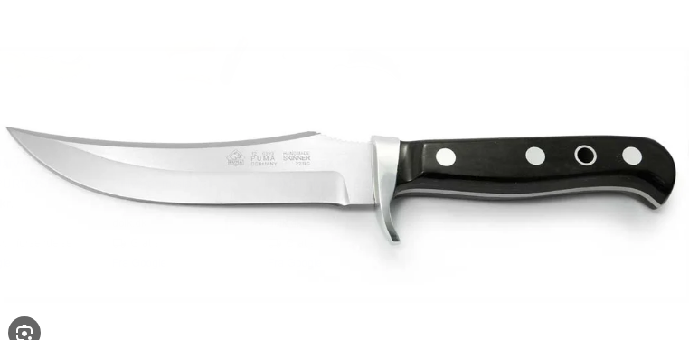 Robust skindningskniv fra PUMA med skarp rustfri klinge og ergonomisk Pakka Wood-skaft, der giver godt greb og kontrol under arbejdet. Ideel til præcis skindning af vildt og kød.